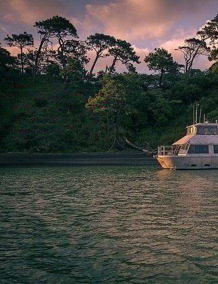 Visit the stunning Bridal Veil Falls, explore Raglan’s vibrant town, then unwind on a sunset cruise with fish and chips aboard the Wahine Moe. Coastal charm from start to finish.