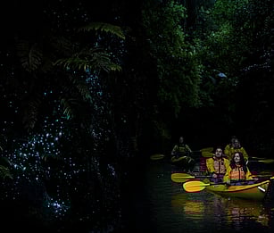 Travel 25 minutes south to Riverside Adventures for a magical evening paddle. Glide through calm waters into a hidden canyon illuminated by thousands of glow worms.